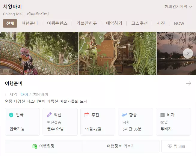 태국의 치앙마이는 90일의 무비자로 여행을 할 수 있으며 인천공항에서 치앙마이까지의 소요시간은 5시간 35분 정도입니다 다양한 축제와 행사가 많아서 길거리를 걸으며 볼거리가 가득한 곳 바로 태국의 치앙마이입니다